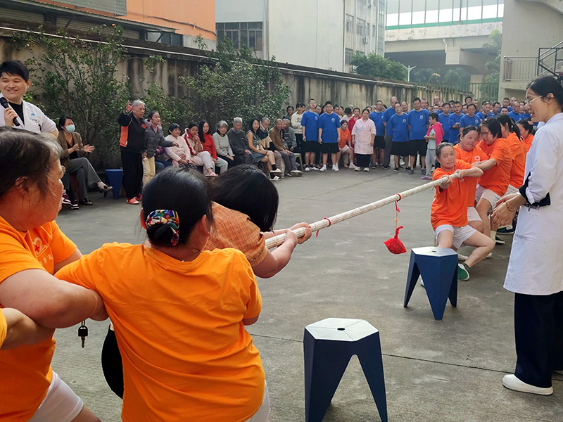 拔河比赛把运动会推向了高潮,运动员们团结一致为病区争光,拥抱握手互相鼓励加油的情景、比赛中奋力拼搏的身影一次次震撼了在场的所有观众。每一项活动都是康复治疗师精心设计,将治疗目标融入到运动比赛项目之中。这些活动看起来简单,但对患者们来说,每一步都是突破。在这里,运动不是目的,而是通往康复的桥梁。