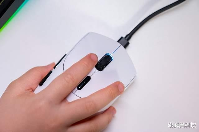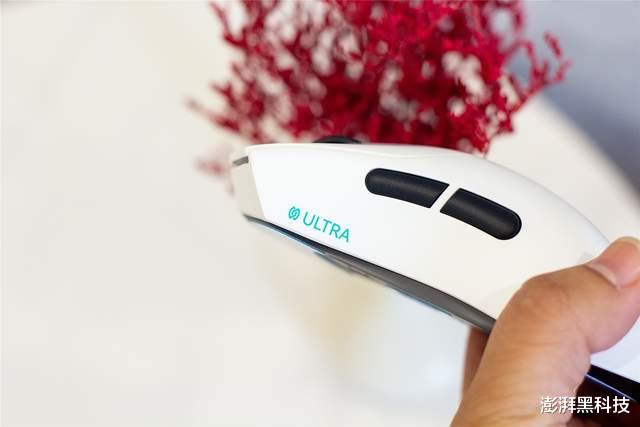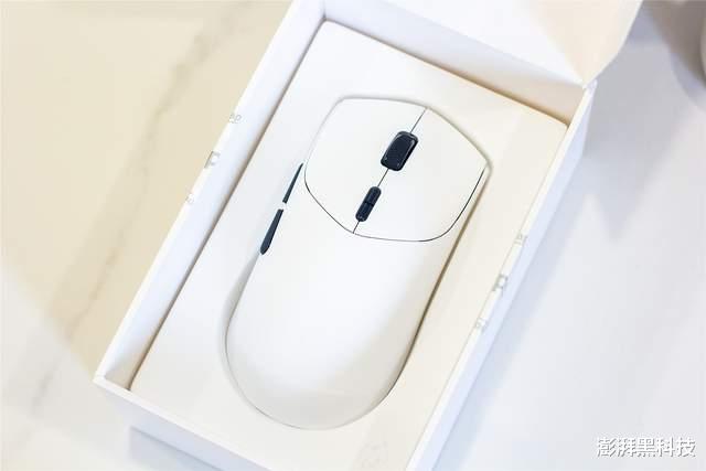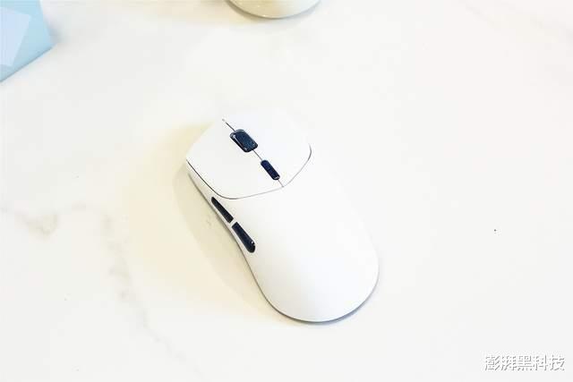 拿起鼠标给我的第一感觉就是轻,重量仅有53g,要比品牌鼠标轻一截。握上去掌心饱满,背部撑得高,不是那种为了减重削平的设计。侧腰左边内凹卡住大拇指,右边弧度缓和,无名指小指都有地方放。左右按键有浅浅指槽,手指自然就位。一天得使用几个小时,手腕手指不酸胀,人体工学这块做的不错。而且重心调得很稳,游戏快速甩动也不飘。