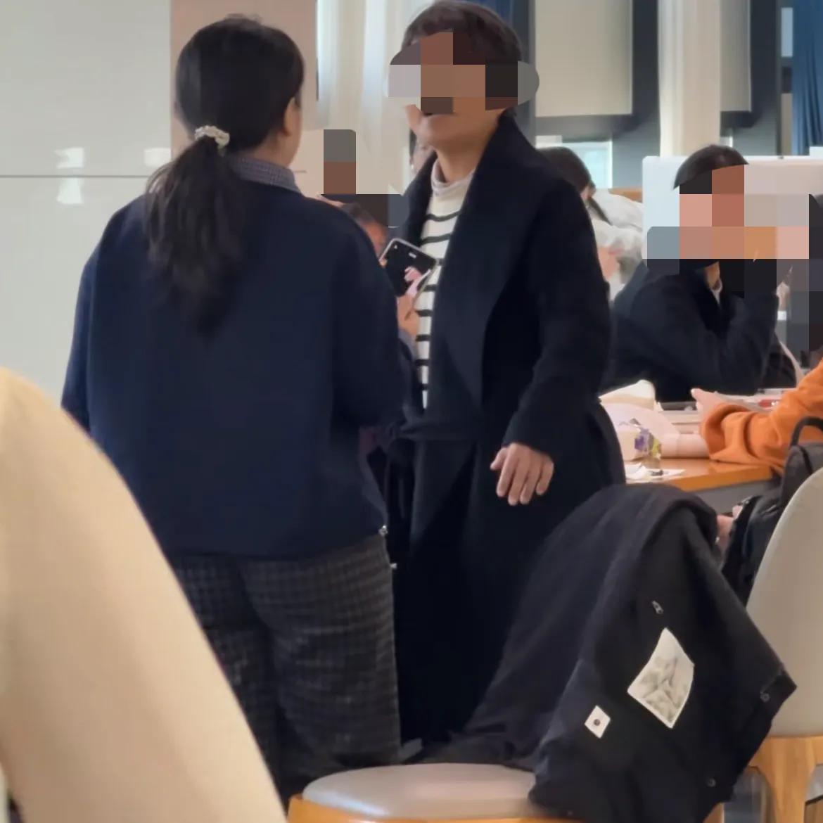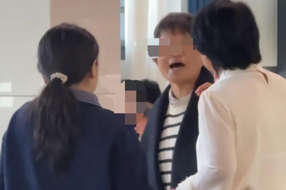只见一位身穿黑色大衣的短发女子,她戴着眼镜,看起来有四十岁左右的样的,她正在怒吼旁边的女孩。
