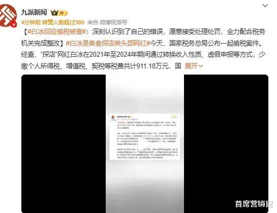 作者 | 八个橙来源 |互联网品牌官今天,国家税务总局公布了一起令人震惊的偷税案件。美食探店网红白冰,在某平台拥有超过4