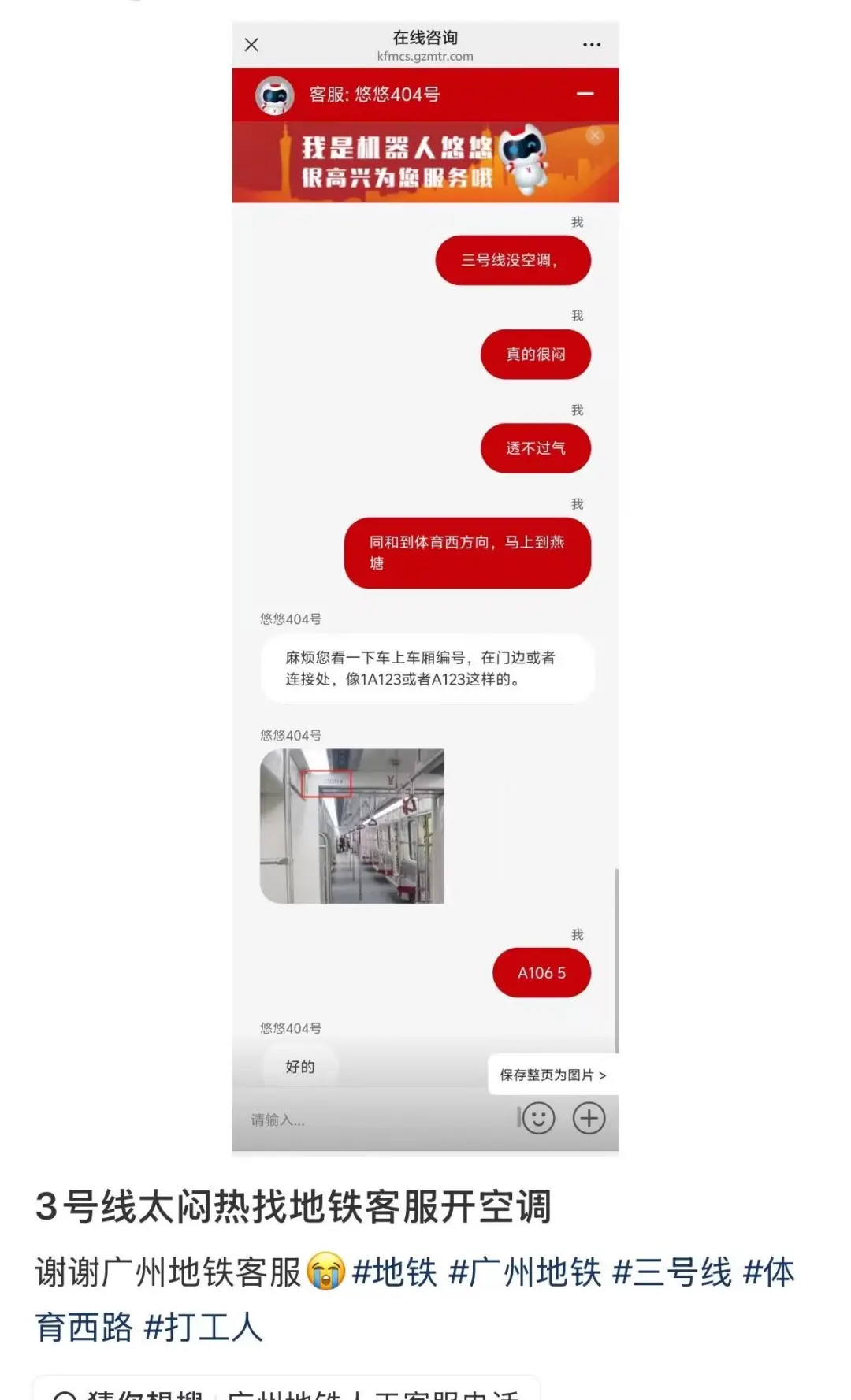 第三种,开得不够冷。据说三号线是有开空调的,但是温度恒定在26度,如果觉得热的话可以找客服调节