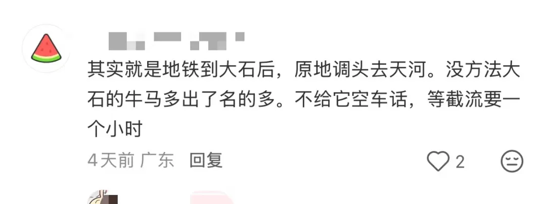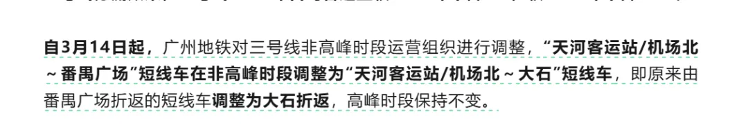 意思很明确了,非高峰期大石到番禺广场的客流量不够,所以短线直接就在大石掉头了
