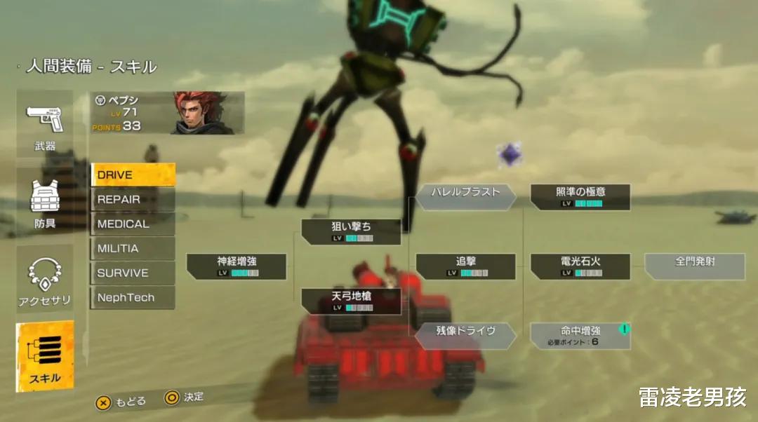 到了后来的《Xeno Reborn》,职业系统又改成了五大技能树,即驾驶、修理、医疗、战斗、生存,只要点数足够,每个人都可以点出修理相关的技能(虽然大破修理等依然是机械师角色专属的)