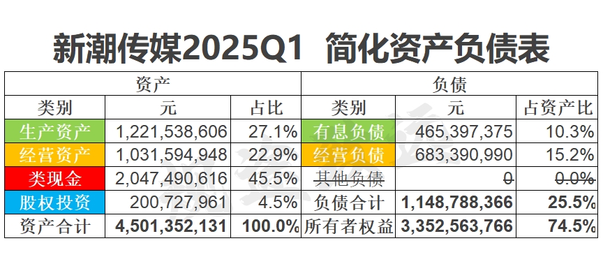 好在,行业地位虽然一般,但也不用负债经营——新潮目前没有向银行、金融机构等借入传统意义上的有息负债,财报上显示的4.65亿有息负债,全是为了租赁媒体点位而产生的‘融资租赁’。股东投入的钱还没烧完,目前并没有外部借款,所以整体的负债结构还是比较健康的。