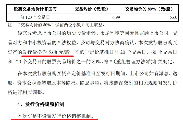 当前公布的发行价(5.68元/股)已经确定,不会因市场或交易条件变化而主动修改。若需修改发行价,需重新履行法定程序(与对方约50位股东分别重新协商、重新经过董事会/股东大会审议),而文件中明确无此机制,所以这个价格基本可以确定了。
