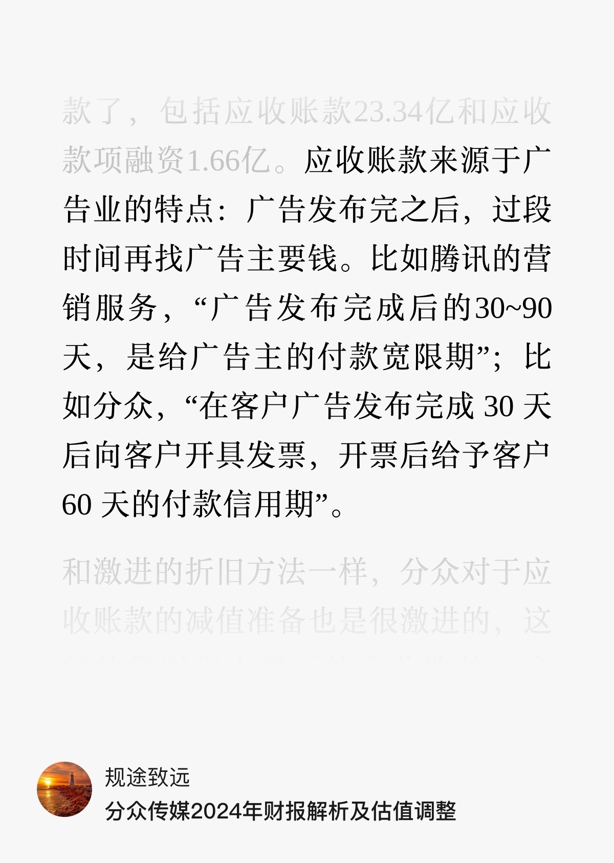 广告行业的特点就是先发广告后给钱(不光梯媒,腾讯的营销服务也一样有账期)。