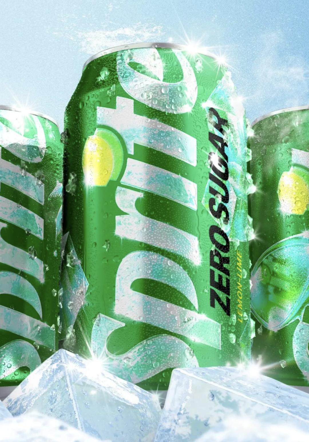 2022年,品牌进一步推进极简化,将字标统一为单一绿色,彻底移除“星爆”外框,仅将其作为独立符号应用于瓶盖等细节,虽适配了更广泛的数字化应用场景,却也在无形中稀释了品牌的个性与经典辨识度,让雪碧的“潮流锋芒”有所弱化,品牌影响力逐渐被市场稀释。