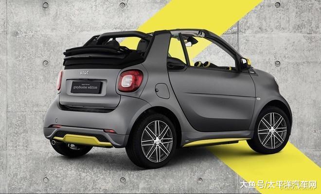 smart官方宣布,smart fortwo耀目灰特别版正式上市,新车提供硬顶和敞篷两种车身结构,官方指导价分别为人民币17.5888万元和20.3888万元,全国限量发售110台。smart fortwo耀目灰特别版基于smart fortwo 66千瓦硬顶先锋版和66千瓦敞篷先锋版打造,一身战斗的哑光灰配色以车名相对应,前唇、侧裙、尾唇、外后视镜壳则用上哑光鹅绒黄来与车身形成鲜明对比。轮毂也有专属型号:来自奔驰御用改装厂巴博斯的16寸轻量化轮毂。相比普通版smart,该车还不仅仅是外观变得激进,悬挂系统同样进行了运动化调校。