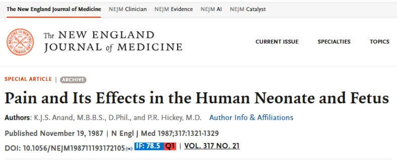 数据显示,1980年代之后,关于婴儿疼痛的研究呈指数级上升。1981年至1990年间发表的儿科疼痛文章,数量远超过去三十年的总和。研究者们不再满足于回答“婴儿会不会疼”,而是追问:“如何评估他们的疼?”“如何更安全地止痛?”