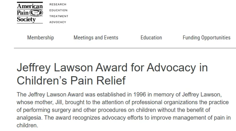 同年,美国疼痛学会设立了“杰弗里·劳森儿童疼痛倡导奖”,吉尔·劳森成为首位获奖者。这个奖项的设立,标志着“亲历者的声音”被正式纳入了医学专业体系。从此,母亲不再只是被“告知”的家属,而成为推动变革的力量。