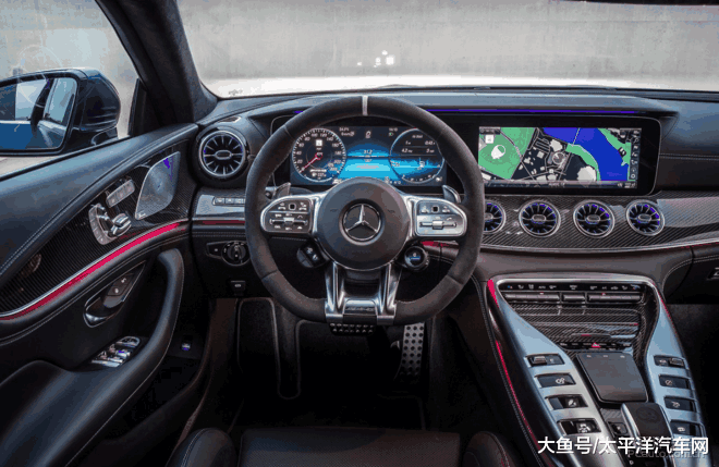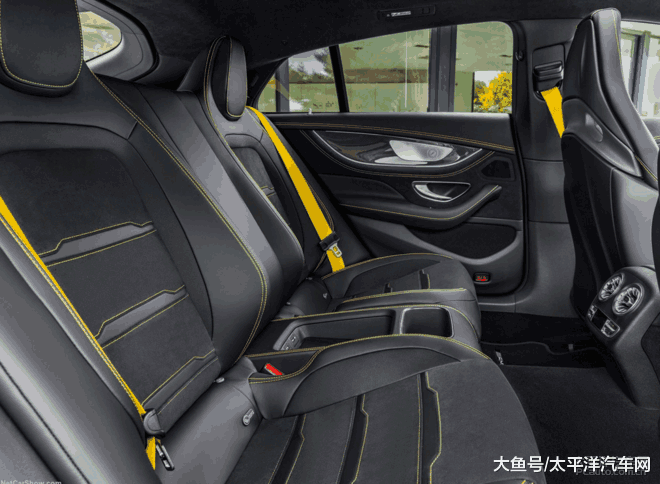 太平洋汽车网的2018广州车展前方探馆团队拍下了AMG GT四门版车型的实车照片。新车定位大型性能轿跑,采用高贵的哑光灰车漆,前后保险杠上采用更多空气动力学套件,而且卡钳采用特制的黄色喷漆,完全就是西装暴徒的观感。全Alcantara材质包裹的方向盘,12点方向用一圈黄色装饰定位,在下半部分,则采用了观感厚实的镀铬装饰,尽显精致。此外,车身多处都采用黄色缝线,甚至连安全带也换上专属的黄色,令人过目不忘。新车将在2018广州车展上正式发布。