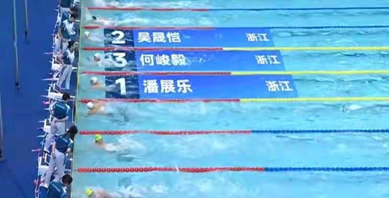 然而,真正的看点在于后半程。当大多数选手仍在奋力冲刺,试图以最佳成绩挤进半决赛名单时,潘展乐却做出了一个看似“保守”的选择。他明显地放慢了节奏,划水幅度减小,频率放缓,仿佛在为晚间的决战积蓄能量。最终,他以49秒63的成绩率先触壁,这个成绩帮助他轻松获得小组第一,并以总排名第三的身份顺利晋级。