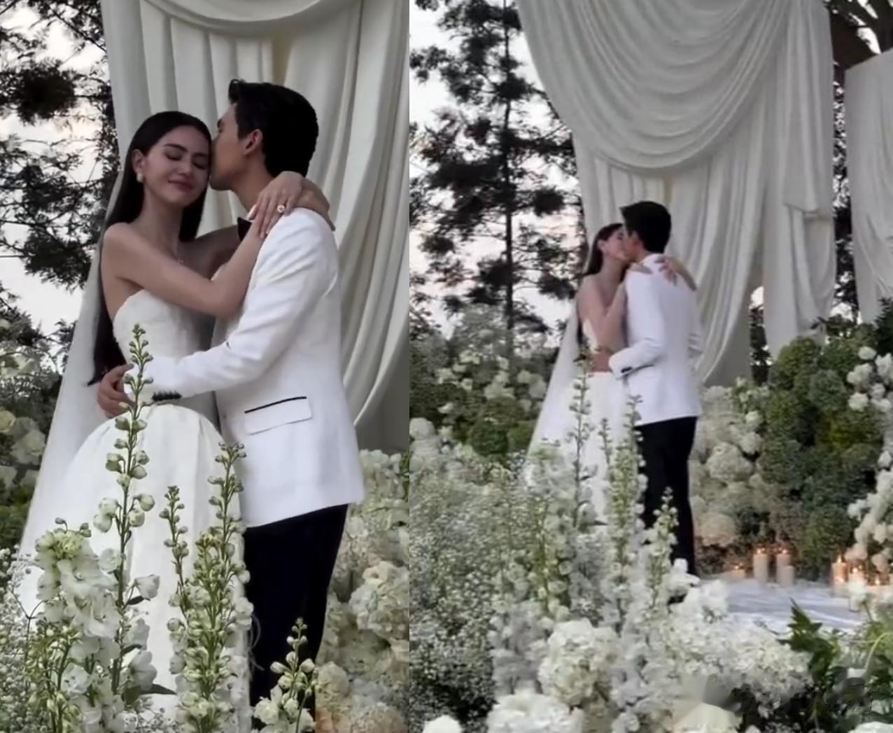 从曝光的视频来看,两人举行的是白色主题婚礼。