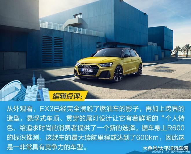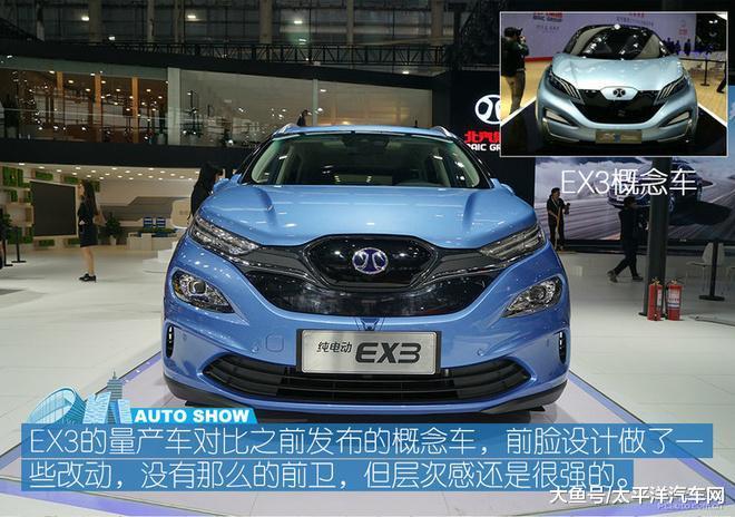 北汽新能源在本次广州车展上正式亮相了EX3的量产车型,新车主打Cross跨界风格,外观设计上足够大胆,足以给人新鲜的感觉。动力方面北汽新能源EX3将搭载最大功率为180kW,峰值扭矩为300牛·米的驱动电机,其0-100公里加速时间为7.9秒,极速可达165km/h,并搭配宁德时代或普莱德新能源所提供的锂电池供电。续航里程方面,官方称新车城市工况续航超500公里,60km/h等速续航里程可达600公里。