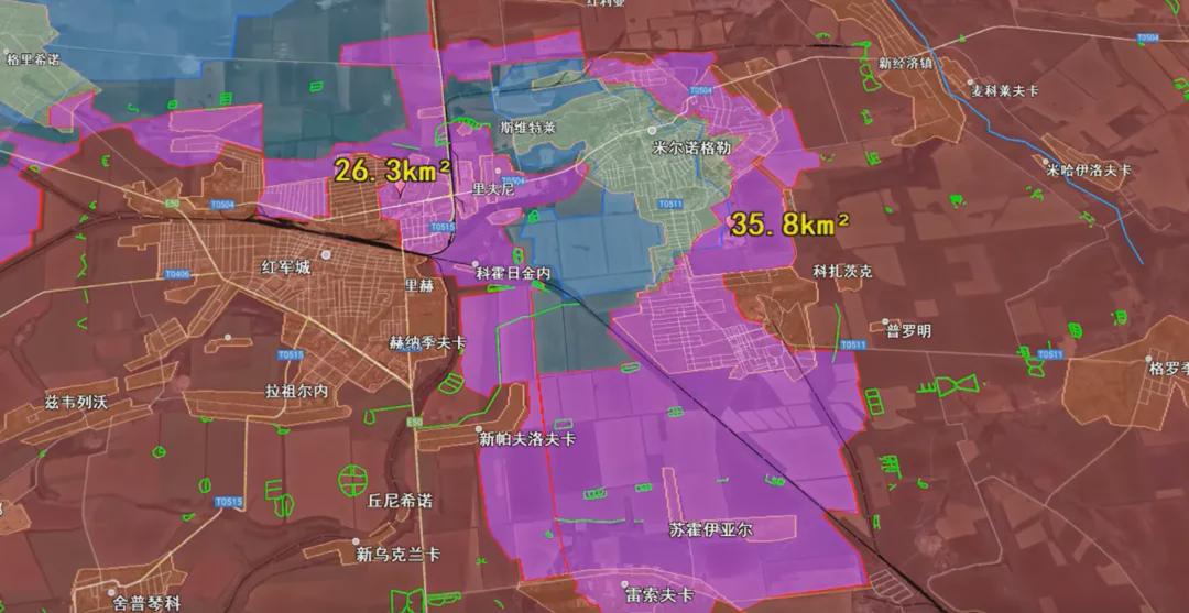 米尔诺格勒前线:俄军+35.8平方千米