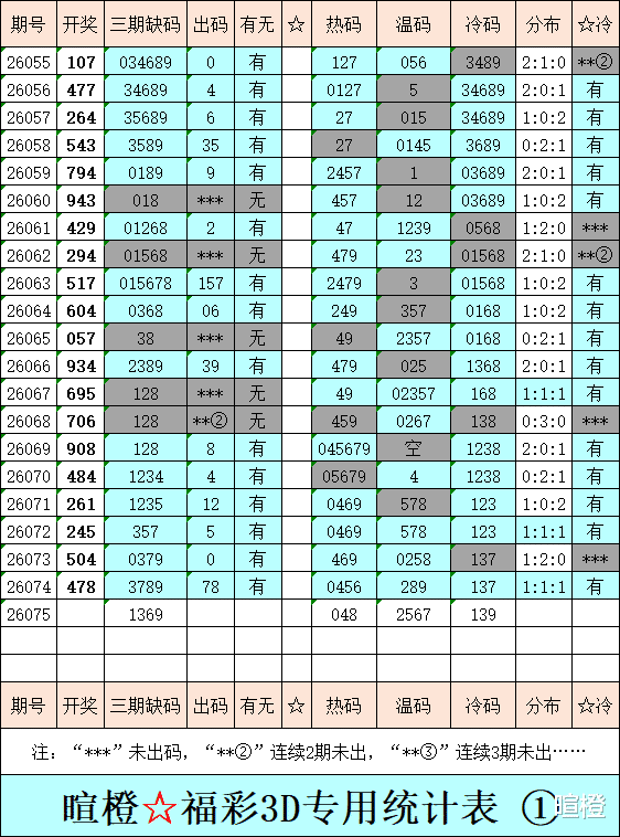 26075期:暄橙福彩3D综合条件(本期将在3月26日21:15开)一、上期回顾 ☆1、上期开奖号:4 7 8。2、和值