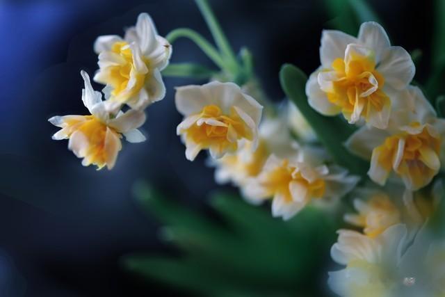 我们知道水仙花属于鳞茎植物,在秋季的时侯,它将养分储存于鳞茎之中,冬季萌发新芽,春节前后开花。