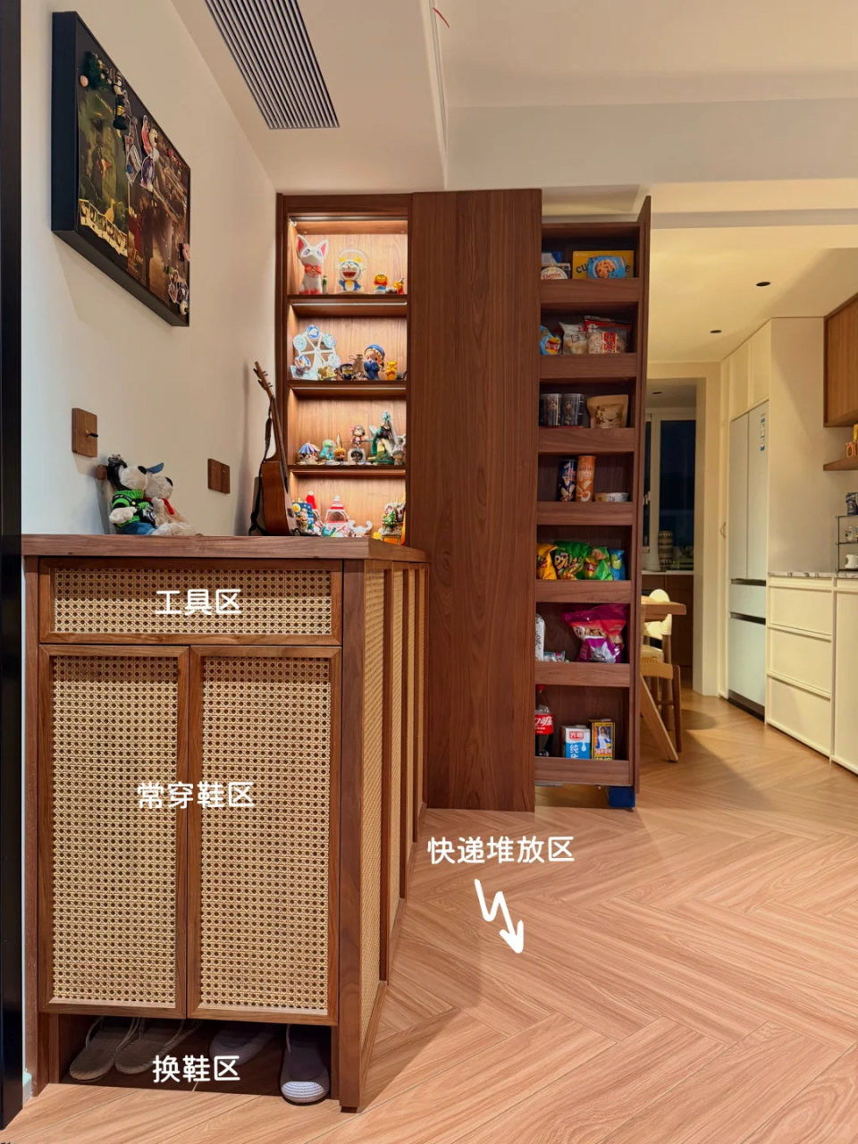 快递堆在脚边,外套只能随手搭在餐椅背,鞋子在门口排成一列“长队”……没有玄关的家,进门没有缓冲、没处放东西,全是杂乱与尴尬。