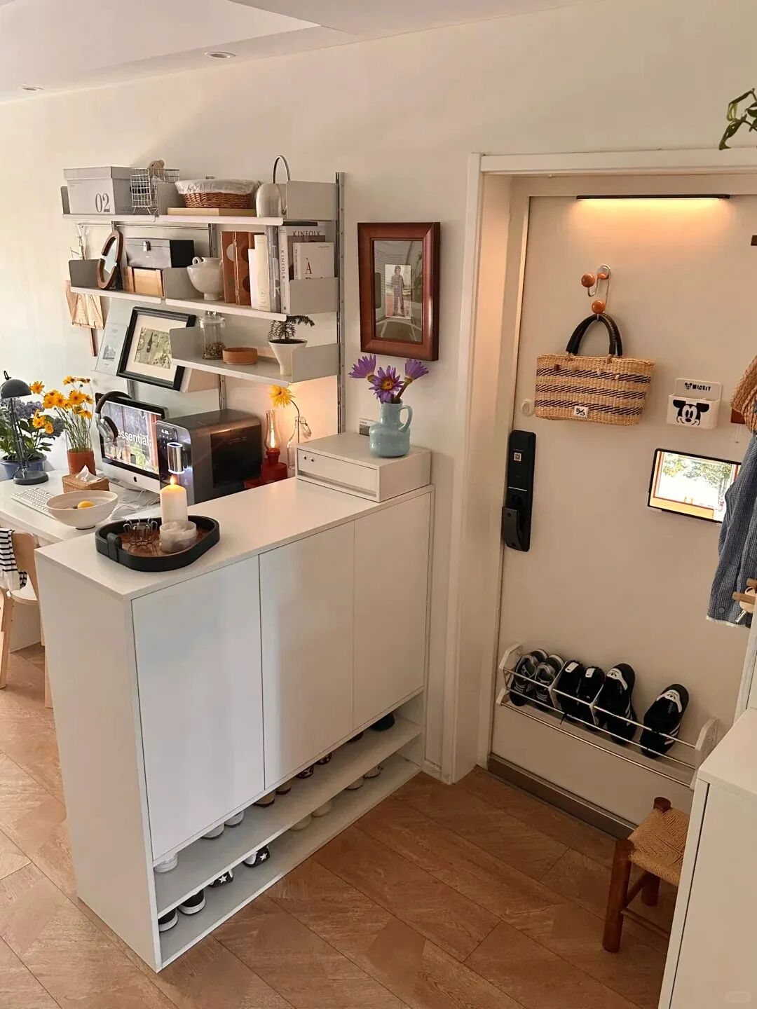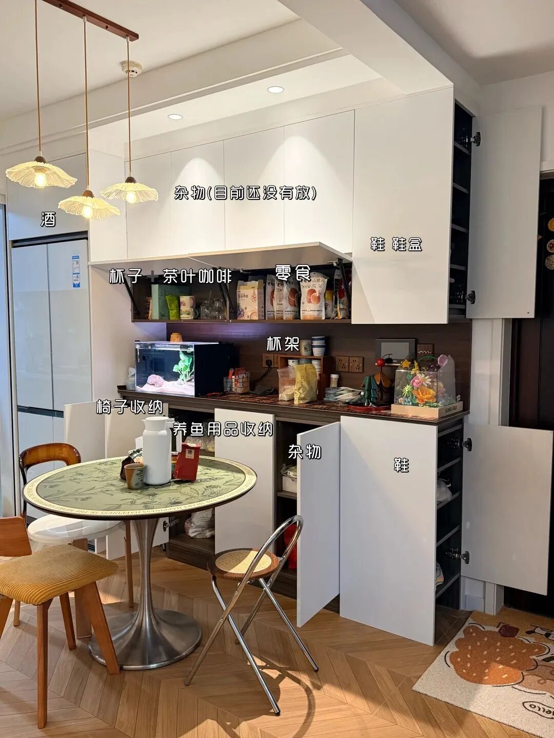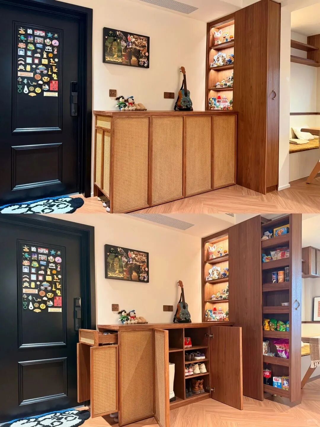 我家小户型没空间单独做玄关,但是把餐边柜和鞋柜一结合,就能完美解决!
