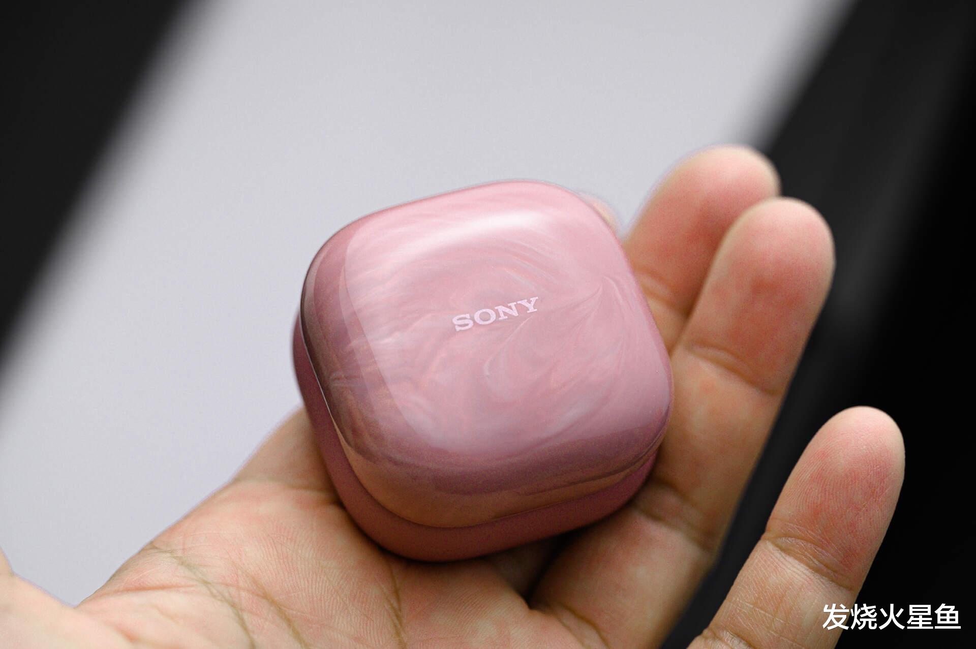 单看外观设计,LinkBudsFit的设计风格非常特殊,不同于索尼家1000X系列的沉稳大气、C系列的时尚简约,它从细节到整体都透着优雅精致感。电池盒采用亮面大理石纹理,触感细腻且自带高光,超出一般耳机电池仓的质感。我手头的这款粉红配色更是加分,圆润的弧度搭配柔和的粉色调,少了电子设备的冷硬,而多了几分温润。比起“鹅卵石”,我更愿意用“玉石”去形容LinkBudsFit。再看耳机本体,LinkBudsFit的设计理念同样特殊:你将它拿在手上,会感觉这耳机是“时尚、运动、专业”三合一的产品,粉红而迷你的腔体像一枚小巧的珠宝,单边仅约4.9g的重量,戴在耳朵上轻若无物。特殊的侧翼撑架则保证了其佩戴的牢固和舒适度,对于通勤和运动人士来说使用上都是没有任何问题的。