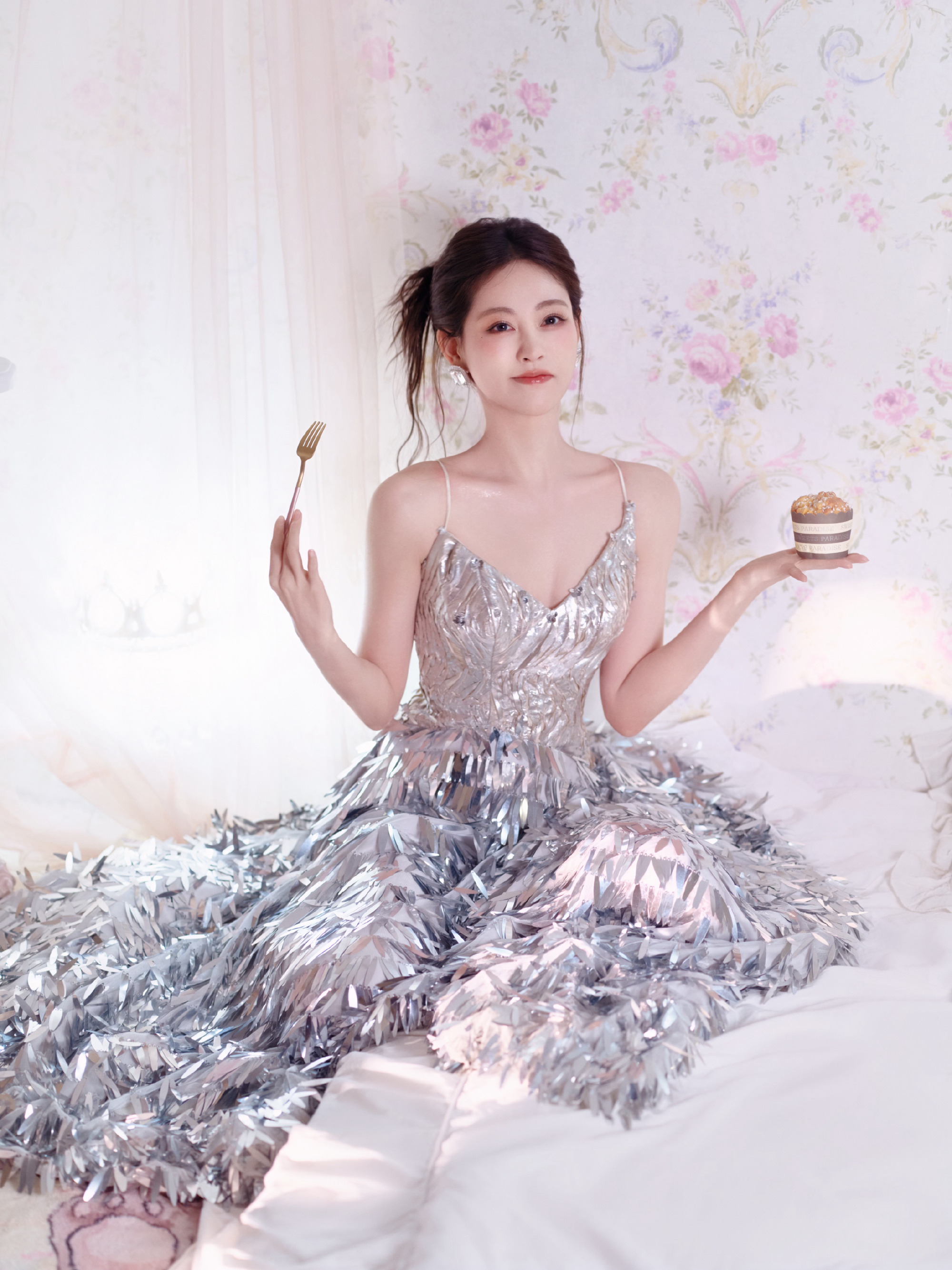 事件的起因并非偶然,而是品牌与艺人团队的精准契合——一簇苔品牌希望推出一款兼具仪式感与情感价值的“年末礼物”主题造型,而祝绪丹此前就因Jimmy Choo秀场的“仙子风”造型出圈,自带灵动优雅的气质,恰好符合品牌对“闪耀公主”的定位,双方因此达成合作,共同打造了这款标志性造型。