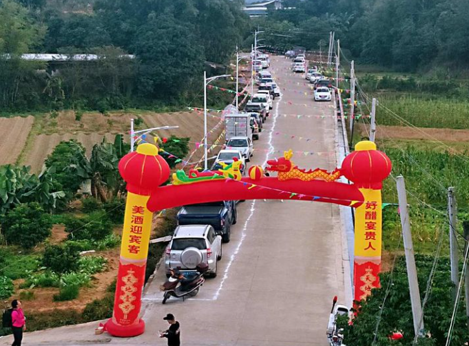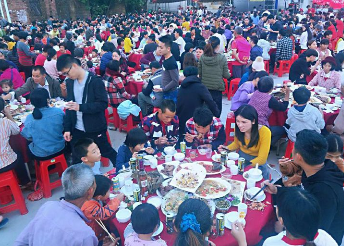 酒宴当天,整个村子都热闹非凡,酒桌上摆的是家乡特色菜和家乡的特色酒,一位村民站出来主持整个酒宴。