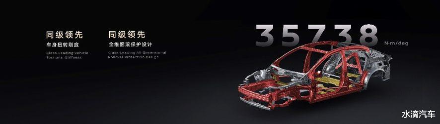 被动安全采用五横十纵超安全笼式车身与豪华车同款后排超高强钢 A 字型架构,车身扭转刚度达 35738 牛米 / 度,形成守护家人的 “钢铁脊梁”。