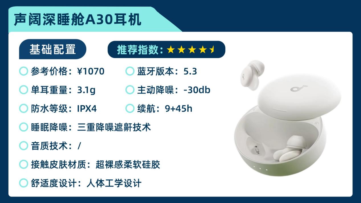 TOP2、声阔深睡舱A30:在中高频噪声的控制上表现较为稳定,例如街道车流声、人声交谈等都能得到一定程度的削弱。