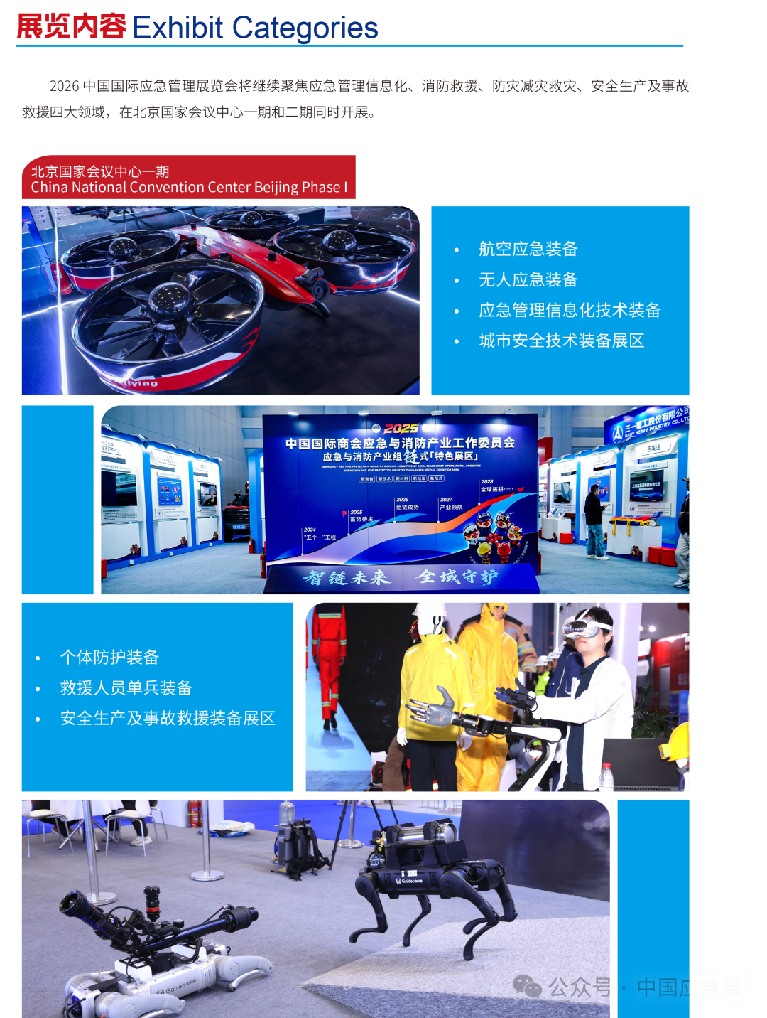 2025中国应急展重点展示多领域应急技术装应急管理部国际交流合作中心备,既有科技含量足、创新水平高、性能指标优、应用前景好的“高精特专”装备,也有效率较高、先进适用的“小快轻智”装备,体现应急管理装备智能化、轻型化、模块化的发展趋势。