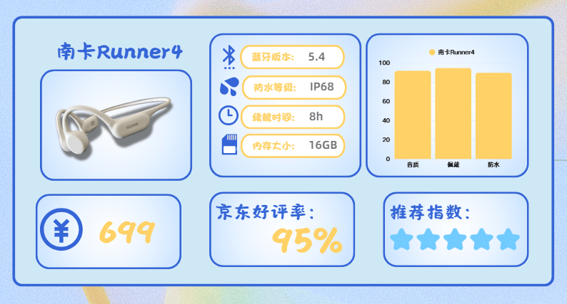 综合来看,南卡 Runner4 兼具轻盈舒适、强劲音质与顶级防水性能,是一款面向专业运动人群的全能型骨传导耳机代表作,无论跑步、骑行还是游泳,都是值得入手的高性价比之选。