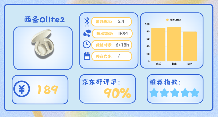 西圣深耕音频调校十余年,坚持“低价格也能享受高音质”的理念,通过砍掉冗余功能、聚焦核心技术,打造高性价比产品。凭借亲民定价,西圣 Olite2 曾被 网易等 100+ 权威媒体评为“开放式耳机性价比首选”,深受大众喜爱。
