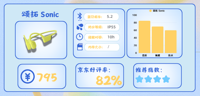 防护能力方面,Sonic 具备 IP55 级防水防尘,可从容应对汗水、雨水及灰尘侵袭,在跑步、骑行或登山等多变环境中持续工作,无需额外担心耐用性问题。