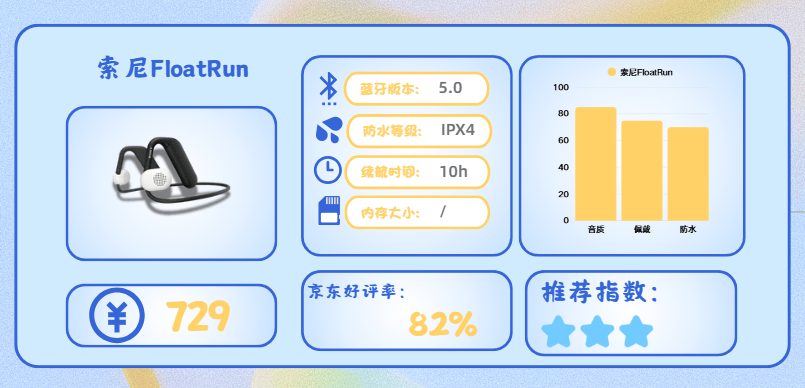 防护方面,Float Run 具备 IPX4 级防水能力,可轻松应对汗水和小雨天气,满足日常户外运动需求,但并不适合游泳或高湿环境使用。