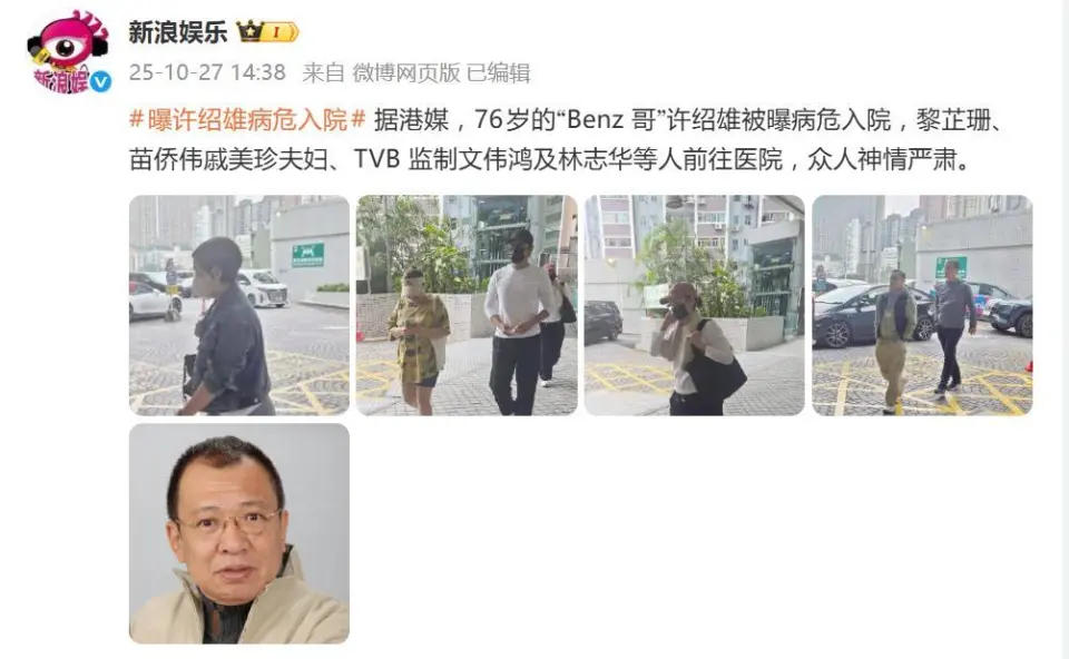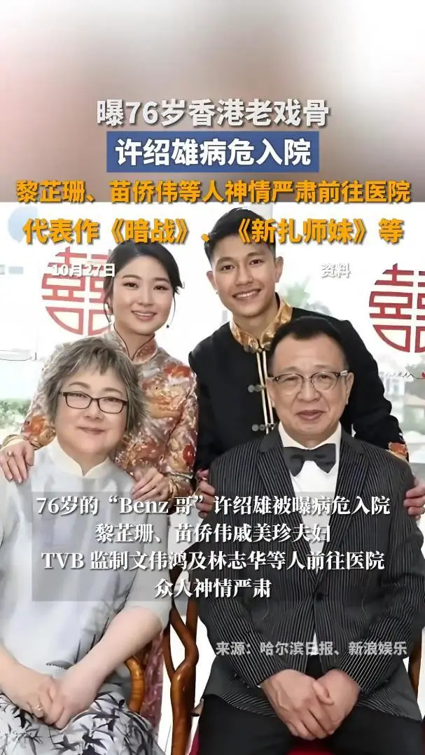 “怎么突然就病危了?上周还看他和女儿拍搞笑视频呢!”10月27日,# 许绍雄病危 佘诗曼落泪# 话题以 5.1 亿阅读量冲上热搜榜首,76 岁香港资深演员许绍雄突发重症紧急入院的消息,让无数观众和圈内人揪紧了心。从苗侨伟夫妇匆忙赶往医院的凝重身影,到佘诗曼发布会当场哽咽落泪,这场突如其来的健康危机,不仅撕开了老戏骨的近况隐忧,更让一代人的集体回忆陷入焦灼。