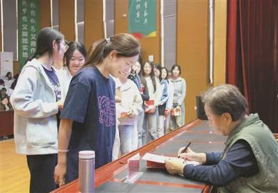 ▲4月24日下午,萧南溪为山西工程技术学院学生签名。