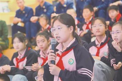 启动仪式后,萧南溪带来首场红色主题讲座。她以亲切口吻,结合父亲萧锋将军的革命亲身经历,为在场师生娓娓道来那段烽火连天的峥嵘岁月。从万里长征的艰难跋涉,到革命先辈矢志不渝的初心坚守,她用鲜活的事例、真挚的情感,带领现场师生回望峥嵘岁月。当讲到父亲一生坚守革命信仰,辞世前四小时仍坚持写下日记时,萧南溪声音哽咽,台下师生无不动容,雷鸣般的掌声回荡在校园。她勉励青少年要珍惜幸福生活,勤学善思、立志报国,成长为担当民族复兴大任的新时代少年。五年级学生田元淇听完讲座后深有感触:“革命先辈不畏牺牲才换来今天的美好生活,我们一定要好好学习,长大后报效祖国。”