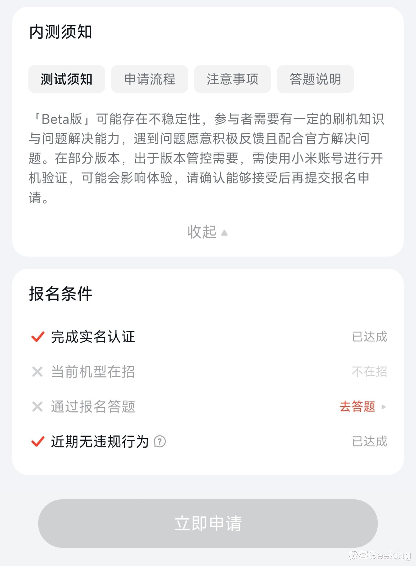 报名申请之后等待审核,顺利的话在审核通过之后,届时在系统更新中就能直接收到 OTA 推送。
