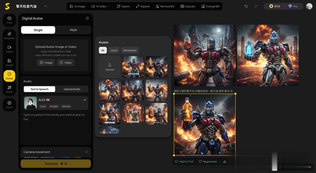 先对话碰撞灵感,再出图,然后直接把图片传入Avatar中实现最终效果。