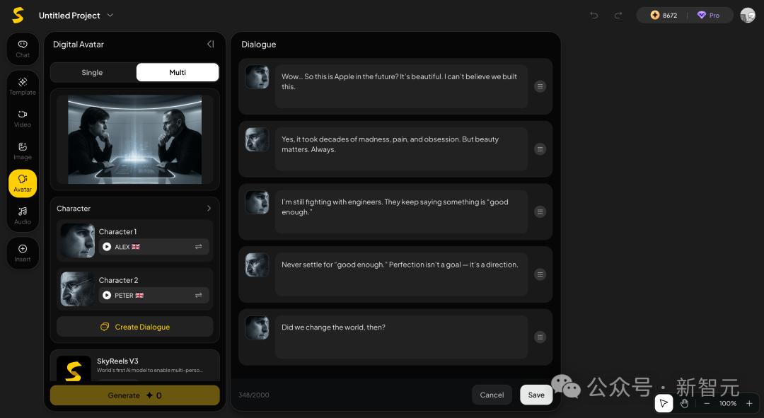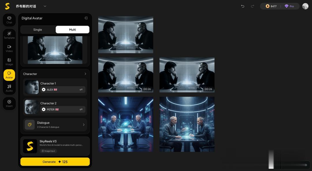 通过头像、对话提示词和配音三管齐下,SkyReels可以精确控制每个角色的说话时机与节奏,让多角色互动自然流畅,具备真实的对话感。