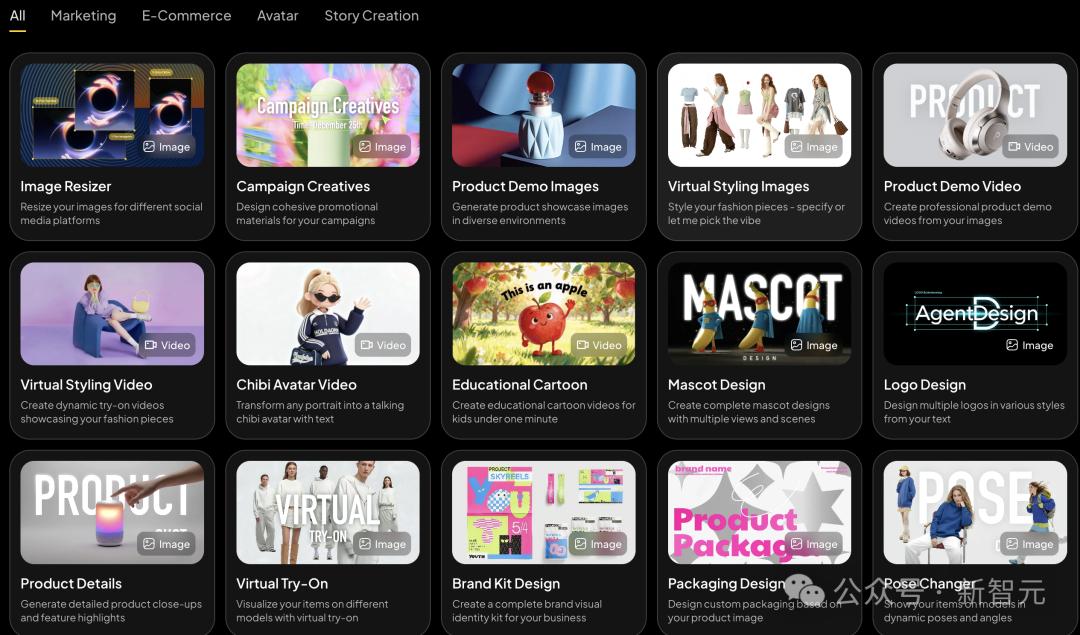 针对功能海报设计、电商服装图制作、商品演示视频以及数字人口播讲解等主流应用场景,SkyReels模板库提供了近10个大类、150余种模板,支持图片与视频的快速生成。