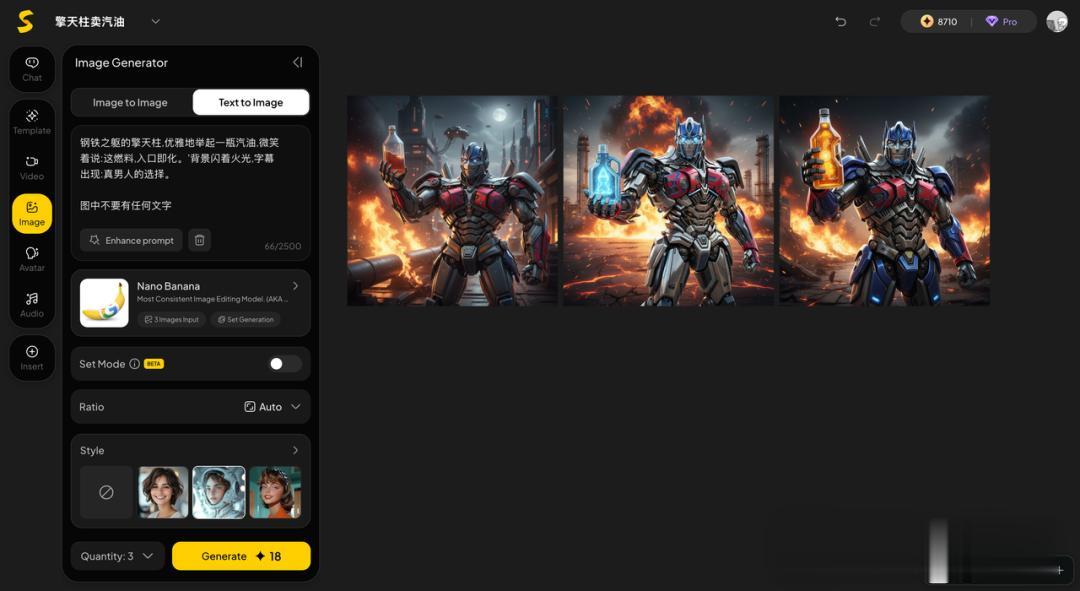 值得一提的是,在全新的SkyReels上,集成了全球顶尖的AI模型,比如在文生图上就可以调用谷歌最新的Nano Banana模型。