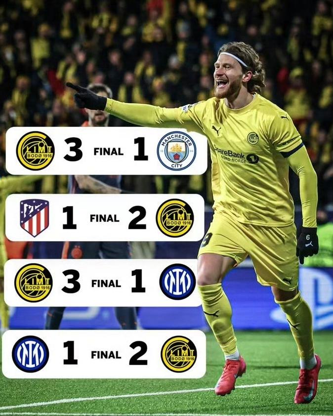 这一夜,博德闪耀书写了多项纪录:首支在欧冠淘汰赛淘汰意甲球队的挪威俱乐部;自1971-72赛季阿贾克斯之后,首支在欧冠对阵五大联赛球队取得四连胜的非五大联赛球队。