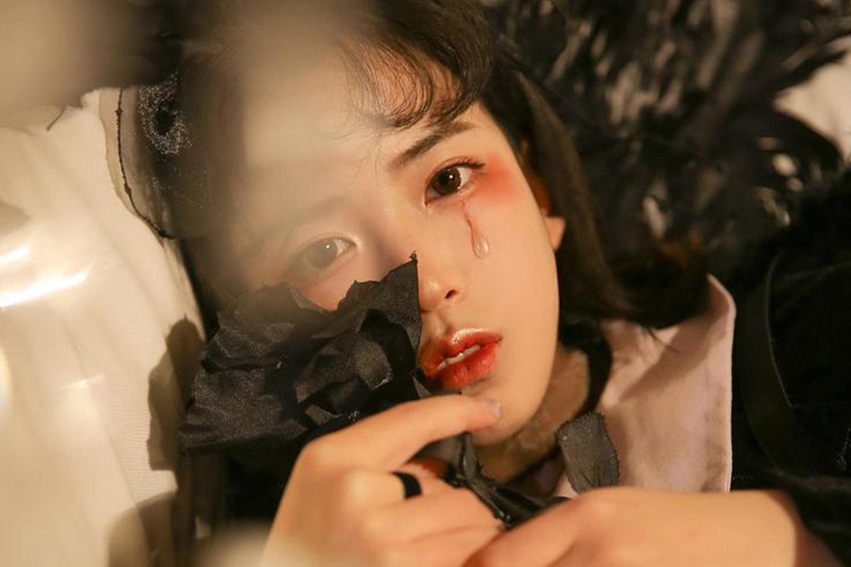 原本空洞的红色眼睛开始流出红色的眼泪,像是绝望的恐惧。