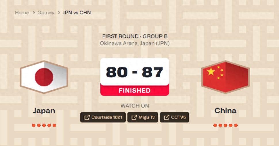 第四节两队陷入激战,中国男篮在胡金秋、赵继伟、廖三宁等人带领下始终压制着日本男篮,最多一度领先到10分,最终成功拿下胜利。