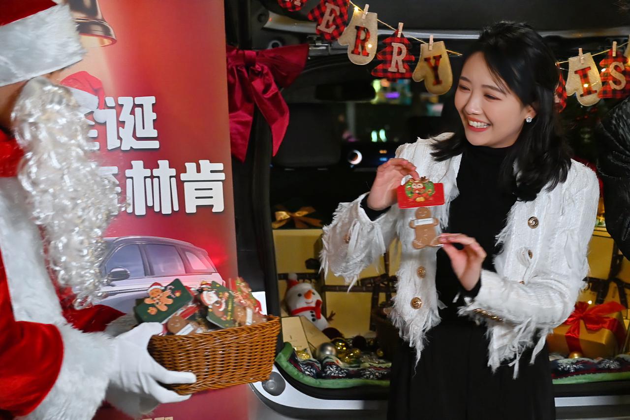 在现场的小哥哥、小姐姐们早已按捺不住,围着圣诞车打卡合影,随手一拍都是大片既视感。
