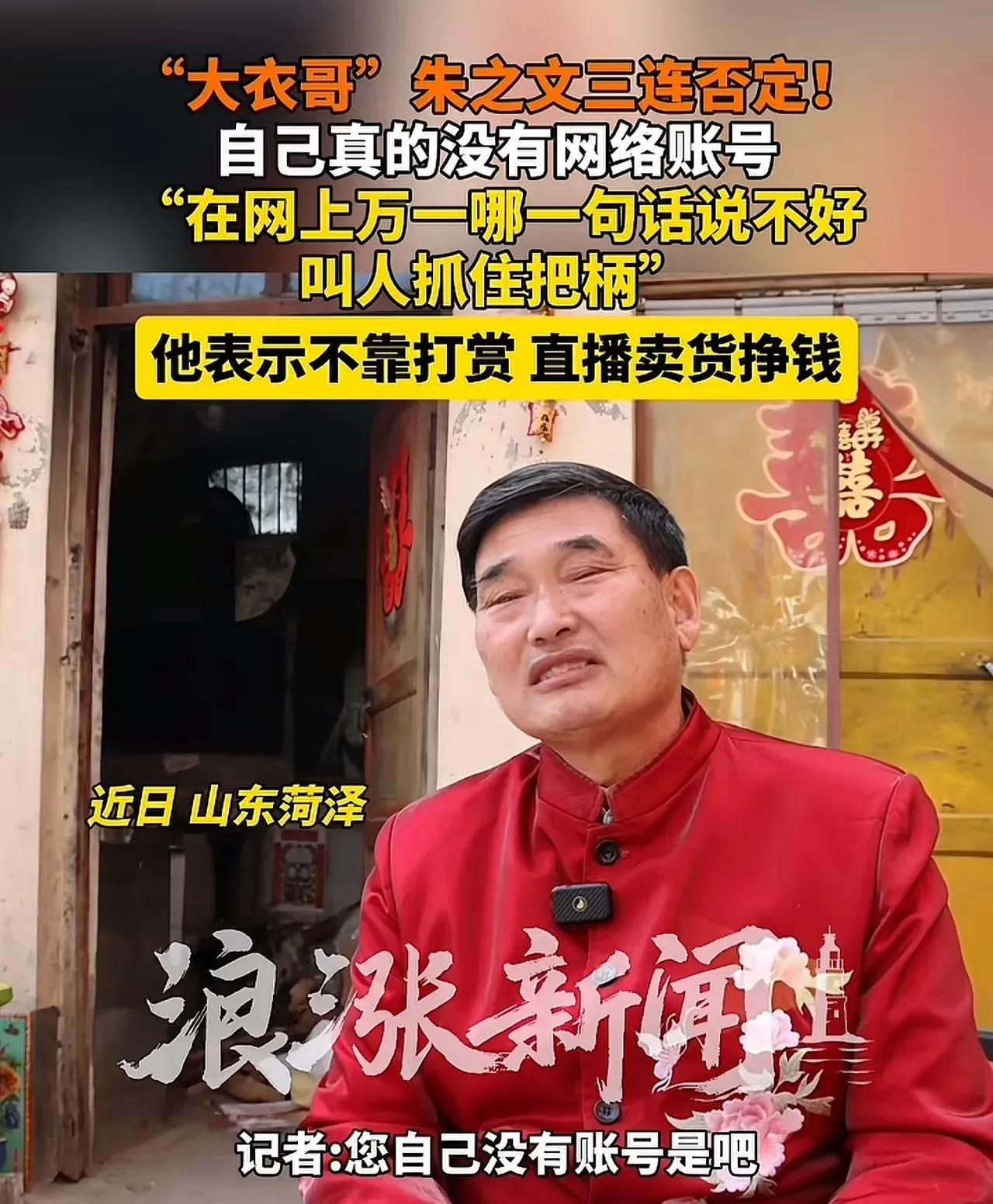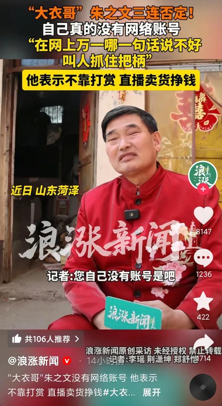 朱之文也没有自己的账号,他不靠直播带货,不靠打赏。