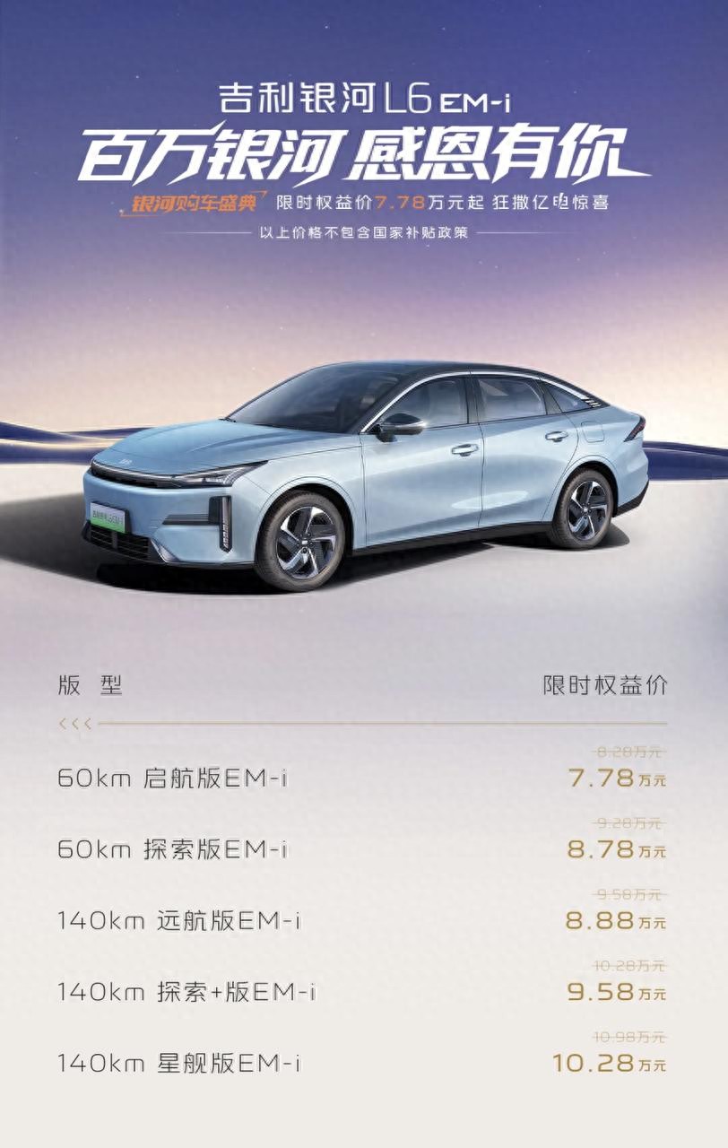 对于大多数消费者而言,购车预算只是用车成本的 “冰山一角”,后续的燃油消耗、维修保养、配件更换等长期支出,才是影响用车体验的关键。银河 L6 EM-i 以 7.78 万起的限时权益价降低购车门槛的同时,更通过全周期的成本优化,打造出 “买车省、养车更省” 的隐形福利,让预算有限的消费者无需为长期用车压力妥协。
