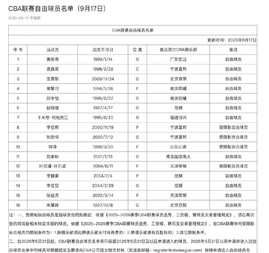以上就是CBA自由球员的情况,因为球员注册截止日已经过了,所以各支球队想要引进国内球员,那就只能在窗口期从自由球员名单里认领,希望他们二人都能被认领成功。大家对此有什么看法呢?