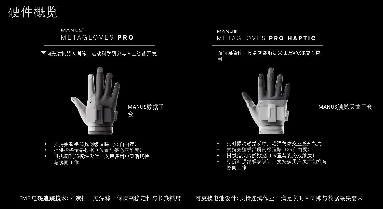 每根手指配备6DoF 电磁传感器(EMF),用于测量其在电磁场中的位置与旋转