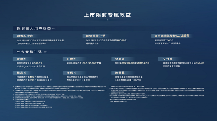 当然,这份高价值还需配上具有诱惑力的购车政策。6000元的超级置换补贴、价值7500元的5年NOA服务、购置税兜底三大权益,以及年底前下定的免费升级音响、金融免息等七大礼遇,共同将这款车的性价比推向了新的高度。